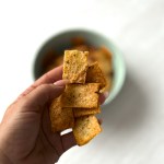 Delicious baked crisps, inspired by Walkers Squares crisps – a fun recipe to make for yourself, for your family or with the little ones. Made with potato flakes, flaxseed and olive oil – making it a teeny bit healthier than the fried versions. Hope you enjoy 🙂