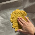 Flatten onto lined baking tray, using the palm of your hands. Try to get it as thin as you possibly can so that they will crisp better when baked.